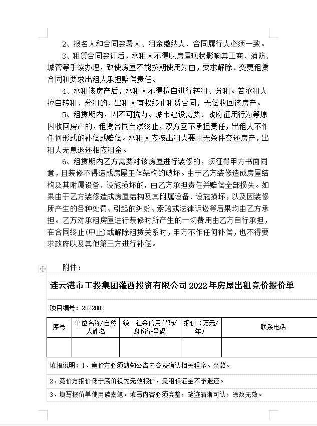連云港市工投集團(tuán)灌西投資有限公司房屋對外公開招租公告