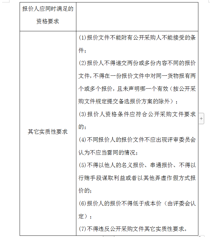 2、評審委員會將根據(jù)以下標準對各報價人進行初步評審,有一項不符合要求的,作否決報價處理,不進入詳細評審。