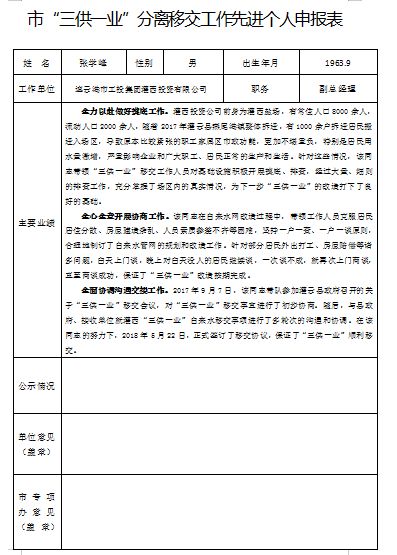 市“三供一業(yè)”分離移交工作先進(jìn)個(gè)人申報(bào)表
