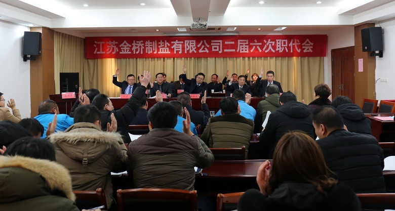 2月15日上午,我公司二屆六次職代會在公司三樓會議室隆重召開,來自各車間、單位、部門的46名職工代表參加了會議,共同商討金橋制鹽發(fā)展大計。公司領(lǐng)導(dǎo)班子成員及職工代表出席會議,部分先進(jìn)代表列席會議。公司董事長、黨委書記、總經(jīng)理朱桂玉作工作報告。大會由公司黨委副書記、紀(jì)委書記、工會主席李昊睿主持。