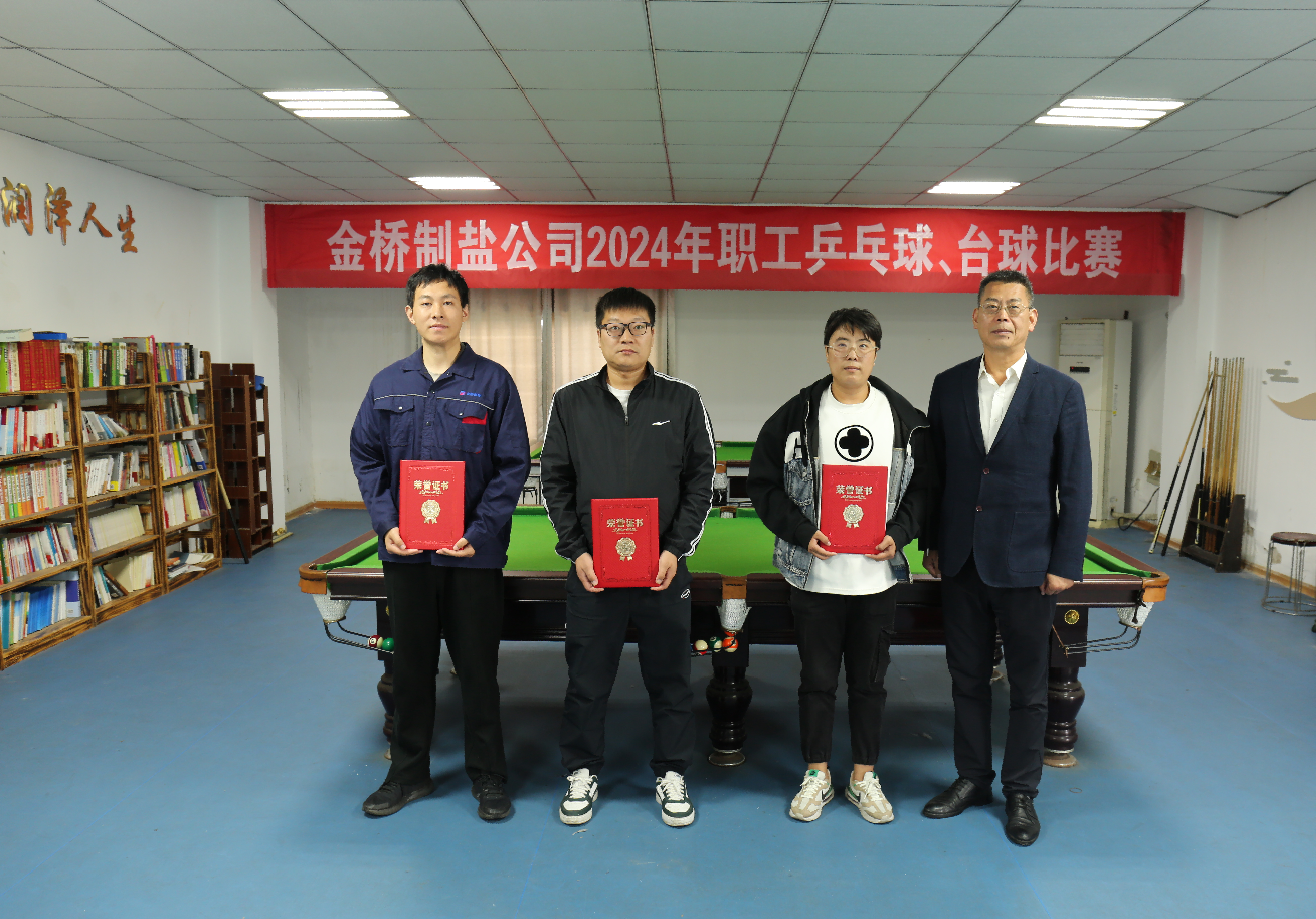 經過一天的激烈角逐,孫浩、季如康、張飛獲得乒乓球男單前三名,李曉月、沈玲玲、陳從輝獲得乒乓球女單前三名,盧超、席小東、于濱瀚獲得男子臺球前三名,程思潔獲得女子臺球冠軍。(金鹽宣)