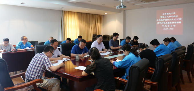 7月5日上午,我公司召開黨委理論中心組(擴大)學(xué)習(xí)會,專題學(xué)習(xí)習(xí)近平總書記在慶祝中國共產(chǎn)黨成立100周年大會上的重要講話精神。公司黨委書記、董事長、總經(jīng)理朱桂玉主持學(xué)習(xí)會。公司領(lǐng)導(dǎo)班子成員及其他黨委理論學(xué)習(xí)中心組成員,各車間單位黨政負責(zé)人,機關(guān)各部室負責(zé)人參加學(xué)習(xí)會。