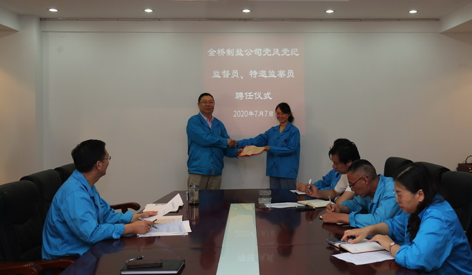 為進(jìn)一步加強黨風(fēng)廉政建設(shè),拓寬監(jiān)督渠道,構(gòu)建黨內(nèi)監(jiān)督、行政監(jiān)察與群眾監(jiān)督相結(jié)合的監(jiān)督制約機制,7月7日,我公司在二樓會議室舉行黨風(fēng)黨紀(jì)監(jiān)督員、特邀監(jiān)察員聘任儀式,黨委書記、董事長、總經(jīng)理朱桂玉為盧明江、徐元等6名黨風(fēng)黨紀(jì)監(jiān)督員和徐永亮、陳東等6名特邀監(jiān)察員頒發(fā)了聘書。(金宣 金紀(jì))