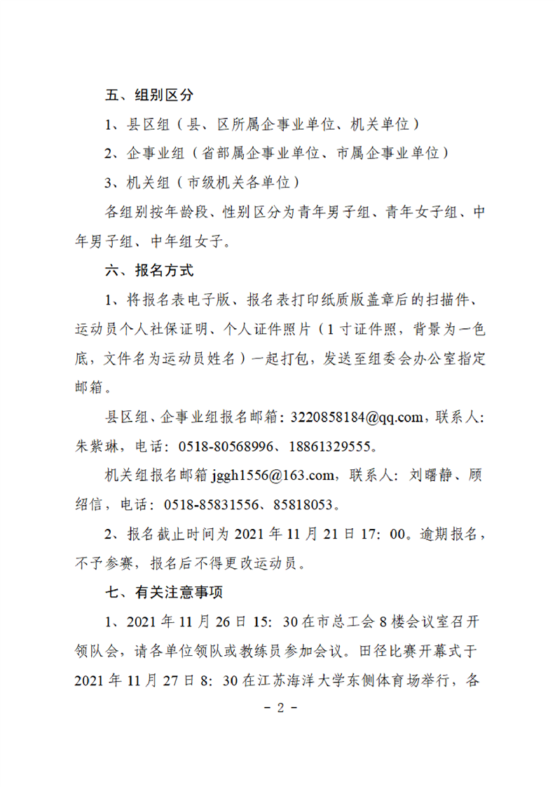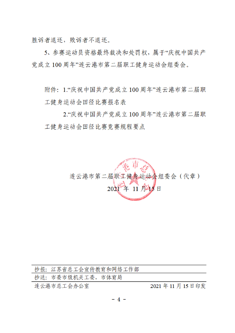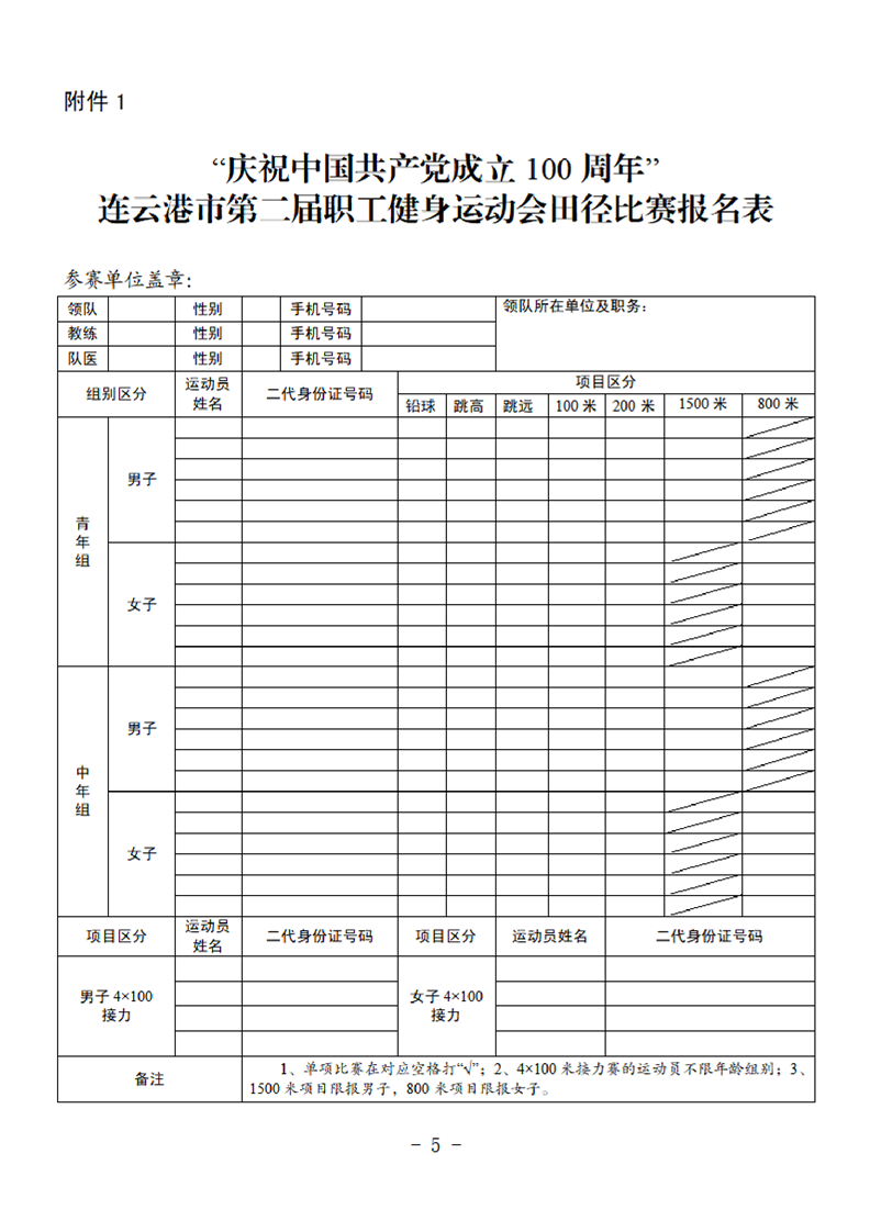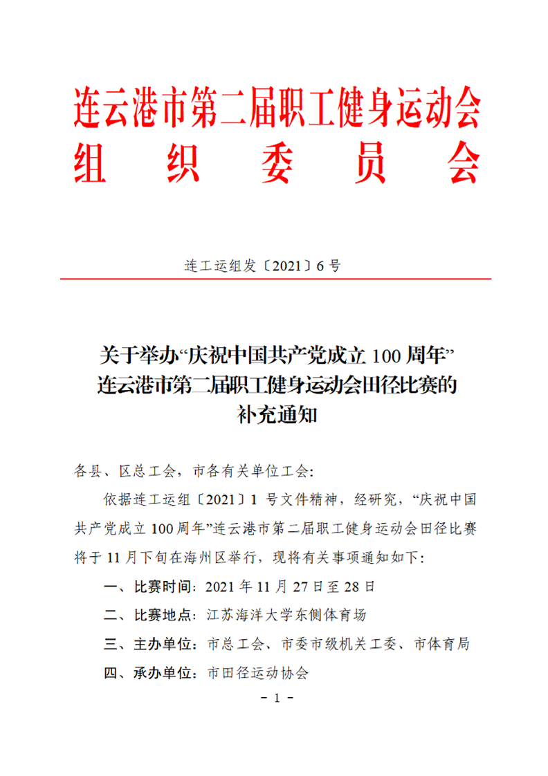 連云港市第二屆職工健身運(yùn)動會田徑比賽的補(bǔ)充通知