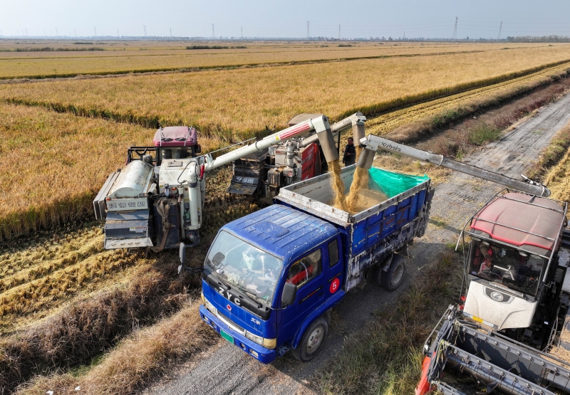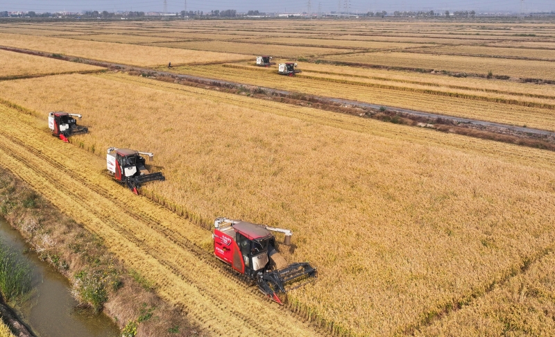 近日,青口投資公司萬(wàn)畝耐鹽堿水稻收割正如火如荼展開,大地上洋溢著豐收的喜悅,頻頻傳來(lái)喜訊。今年秋糧豐收的背后藏著三個(gè)重要的“密碼”。