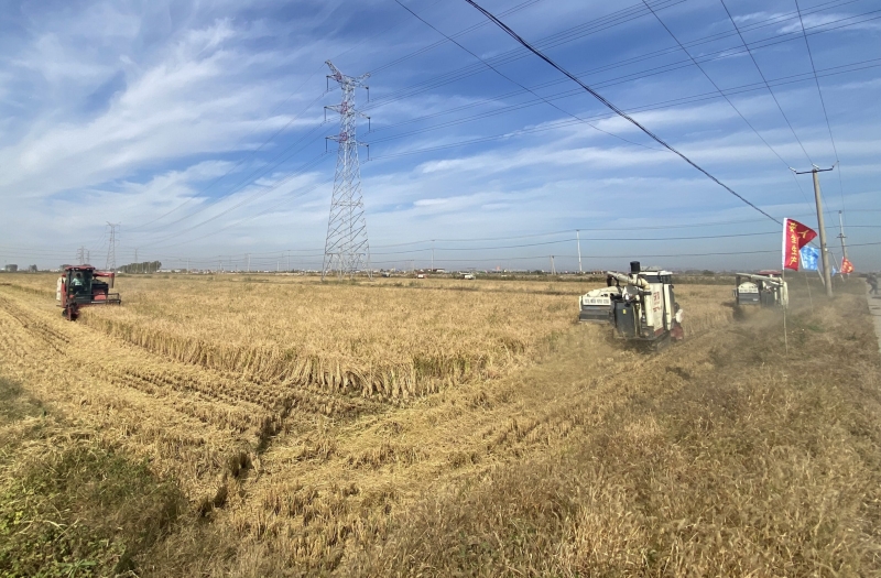 ? ? ? ?金秋時節(jié),碩果累累。10月28日,青口投資公司大新農場萬畝耐鹽堿水稻開鐮收割??。伴隨著機械的轟鳴聲,收割機在稻田里來回穿梭,將金燦燦的水稻收入囊中,現(xiàn)場一派熱火朝天的豐收景象。(大新農場)