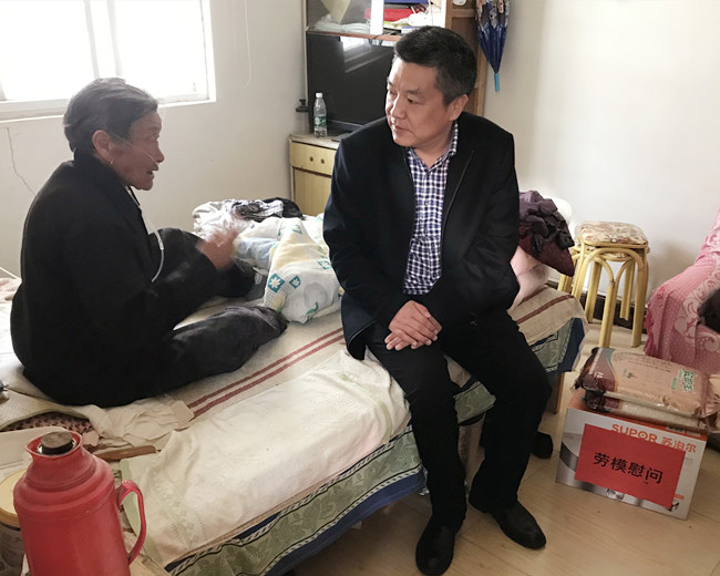 ? ?4月30日上午,公司黨委書記、董事長(zhǎng)、總經(jīng)理史祥平帶領(lǐng)相關(guān)部門人員,來(lái)到市勞模吳從蘭家中,送去組織的關(guān)懷和溫暖。
