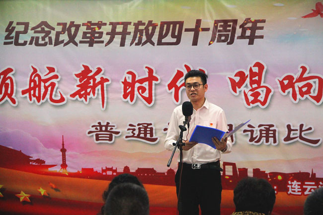 為了紀(jì)念改革開放四十周年,引導(dǎo)和激勵(lì)廣大職工圍繞 “高質(zhì)發(fā)展、后發(fā)先至”主題主線,為建設(shè)“強(qiáng)富美高”新青口、開啟青口發(fā)展新征程貢獻(xiàn)力量。12月11日下午,青口公司黨委隆重舉行“領(lǐng)航新時(shí)代 唱響青口夢(mèng)”紀(jì)念改革開放40周年普通話朗誦比賽?;顒?dòng)邀請(qǐng)到連云港市語委辦副主任、詩朗誦藝術(shù)家協(xié)會(huì)副主席朱衛(wèi)文,國家級(jí)普通話測(cè)試員、市朗誦藝術(shù)家協(xié)會(huì)副秘書長李蕾、主任播音員、市朗誦藝術(shù)家協(xié)會(huì)副主席朱平擔(dān)任評(píng)委。公司領(lǐng)導(dǎo)班子 及 全體管理人員參加活動(dòng)