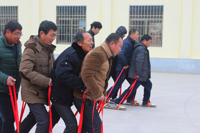 四人穿鞋同步走活動現(xiàn)場熱鬧非凡,隊員們聚在職工活動中心大院內(nèi),活動要求四人穿一雙木板鞋同時走路,這對配合能力的要求非常高,隊員們統(tǒng)一口號,步調(diào)一致,最終這項高難度項目的第一名由盧忠歌等四人組合獲得。
