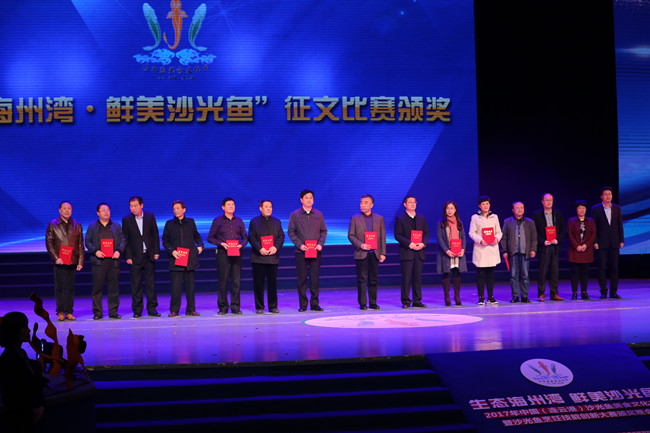 在2017中國(連云港)沙光魚美食文化節(jié)頒獎晚會現(xiàn)場舉行了“生態(tài)海州灣 鮮美沙光魚”專題征文比賽頒獎儀式上,胡傳法董事長榮獲大賽一等獎。