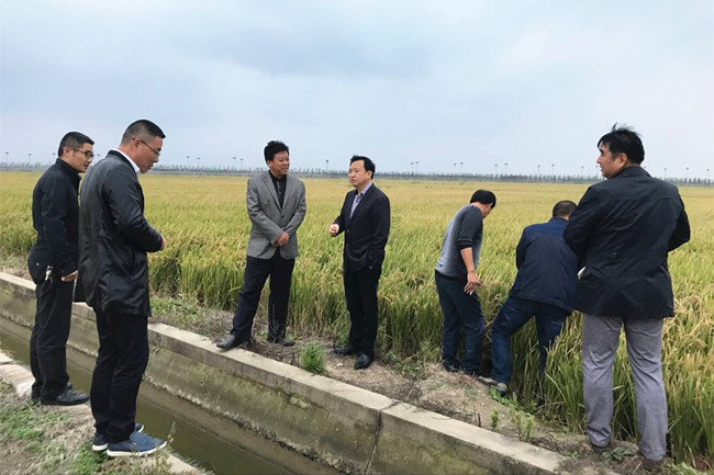 10月16日,蘇糧集團鹽城江海糧油有限公司總經(jīng)理宋俊成一行來我公司考察調(diào)研水稻種植情況,公司黨委副書記、副總經(jīng)理史祥平,黨委委員、副經(jīng)理周緒祥陪同考察。