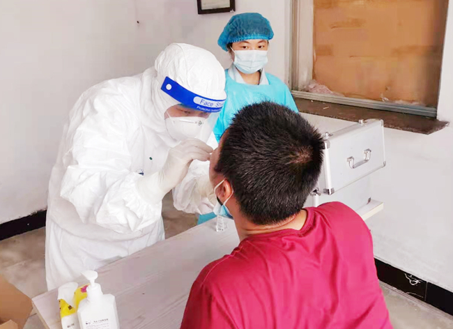 ? ? ? ?在疫情防控的關(guān)鍵階段,青口鹽場(chǎng)衛(wèi)生服務(wù)站積極響應(yīng)上級(jí)號(hào)召和指示,迅速設(shè)立核酸檢測(cè)點(diǎn),對(duì)轄區(qū)內(nèi)外市來連返連人員全員進(jìn)行核酸檢測(cè)。根據(jù)疫情防控要求,檢測(cè)點(diǎn)責(zé)任醫(yī)生和護(hù)士身穿三級(jí)防護(hù)服,依次對(duì)被檢測(cè)人員登記,測(cè)溫、驗(yàn)碼、詢問癥狀體征和流行病學(xué)史,嚴(yán)格執(zhí)行規(guī)范化檢測(cè)程序。此外,檢測(cè)點(diǎn)安排專人每日嚴(yán)格落實(shí)場(chǎng)所消殺工作,確保檢測(cè)場(chǎng)所安全。