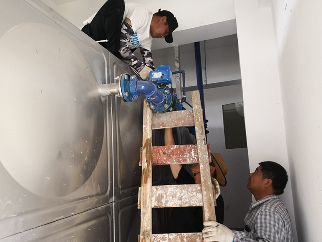 2019年6月3日早晨,自來水班組巡查人員發(fā)現(xiàn)小區(qū)生活泵房水箱的溢水口有大量清水流出,立即組織人員前往搶修。