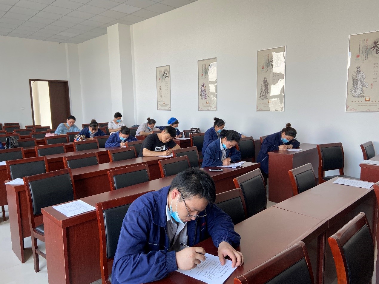 截至5月27日,生產(chǎn)設(shè)備部3個生產(chǎn)班組已全部順利完成后紡作業(yè)培訓(xùn),進(jìn)入后紡操作技能筆試階段。(圖為5月27日上午,生產(chǎn)丙班后紡員工參加后紡操作技能筆試考核。)
