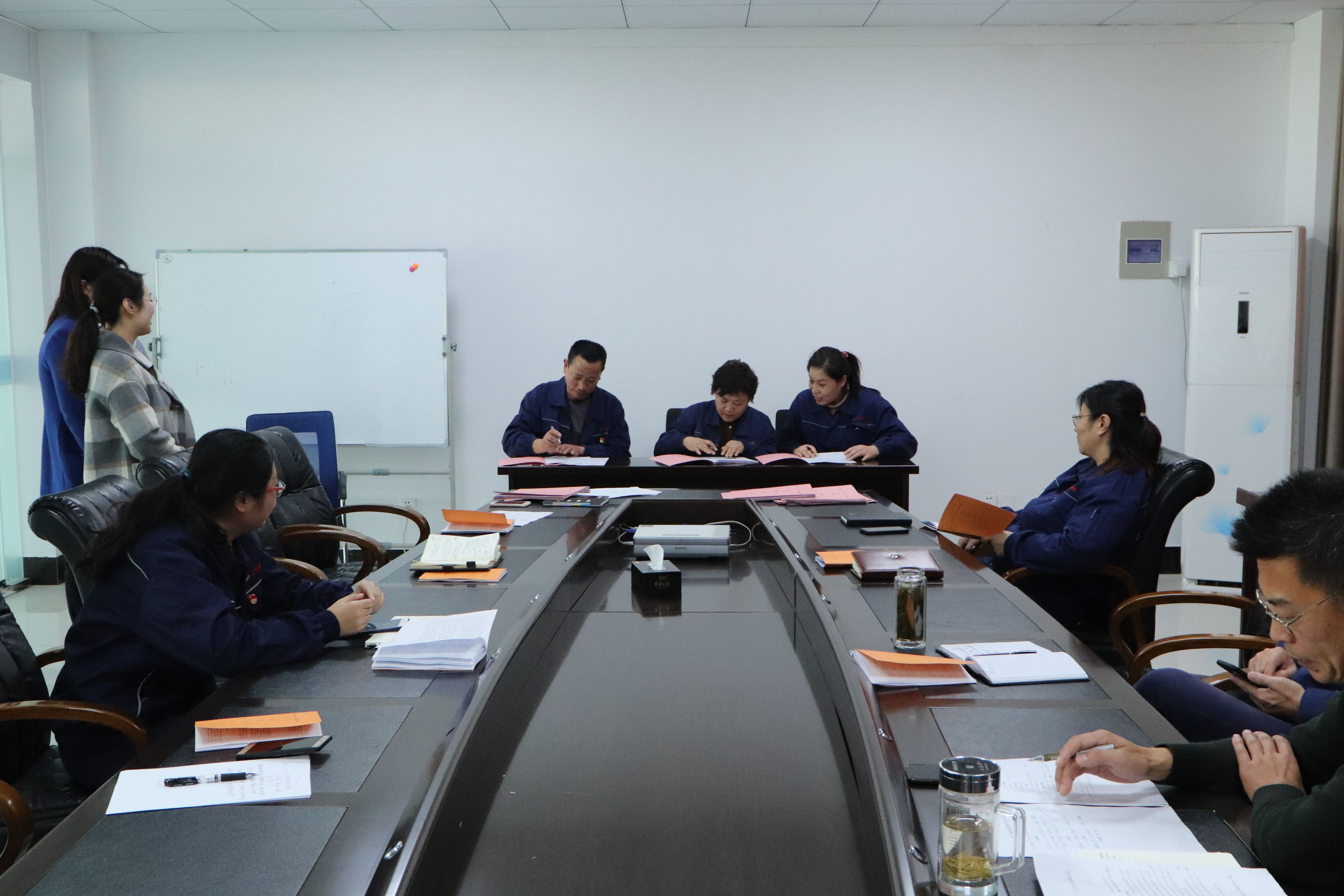 黨小組組長(zhǎng)、生產(chǎn)班組班長(zhǎng)、工會(huì)小組組長(zhǎng)、名譽(yù)班組長(zhǎng)簽訂了《共建協(xié)議》。