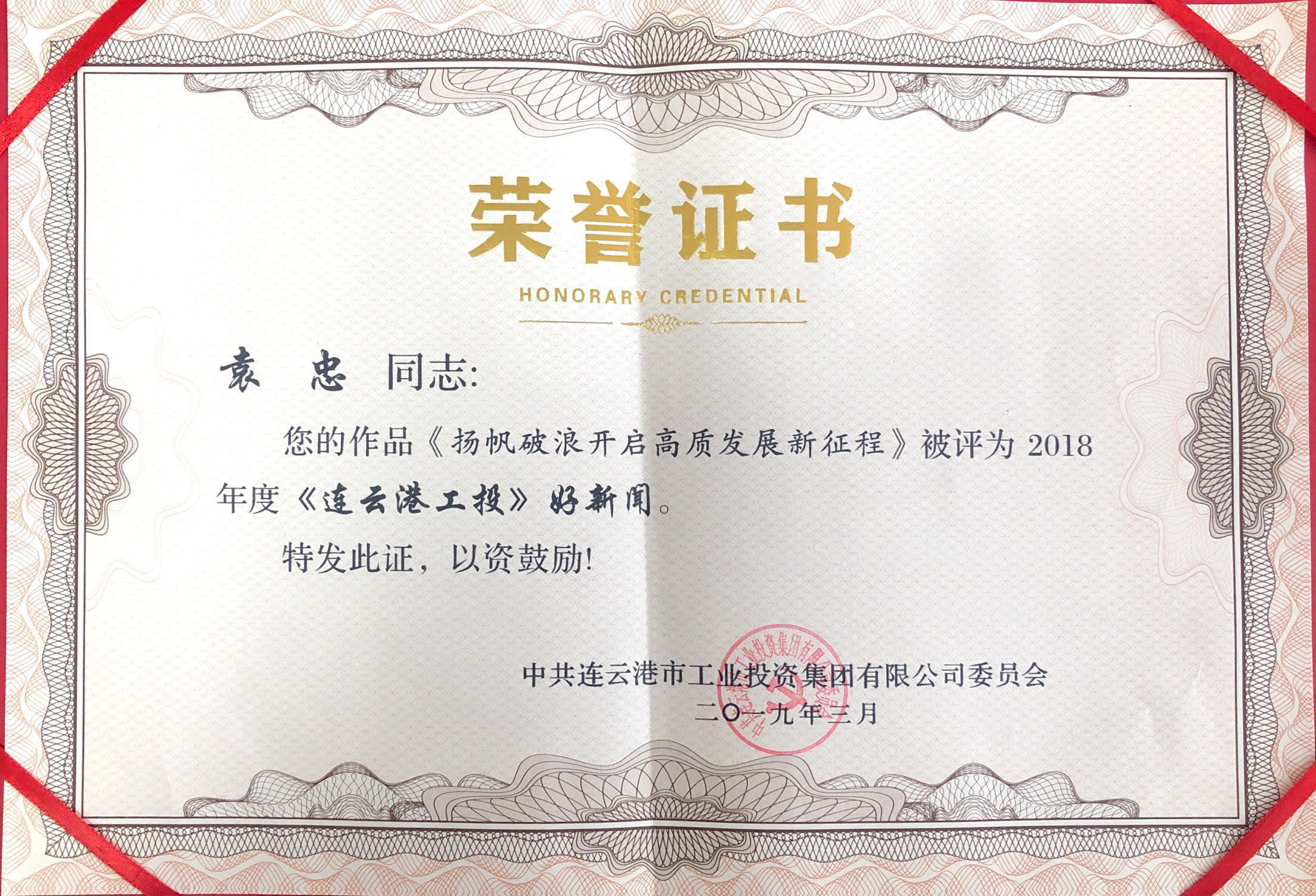 3月15日下午,集團(tuán)黨委召開(kāi)了“聚焦高質(zhì)高效,聚力創(chuàng)新創(chuàng)優(yōu)”黨內(nèi)主題教育實(shí)踐活動(dòng)部署推進(jìn)會(huì)。會(huì)上,我公司被評(píng)為“2018年度新聞宣傳工作先進(jìn)單位”;黨支部副書(shū)記袁忠所著評(píng)論文章《揚(yáng)帆破浪開(kāi)啟高質(zhì)發(fā)展新征程》,入選“2018年度《連云港工投》好新聞”;李筠涵獲得“2018年度新聞宣傳工作先進(jìn)個(gè)人”稱號(hào)。