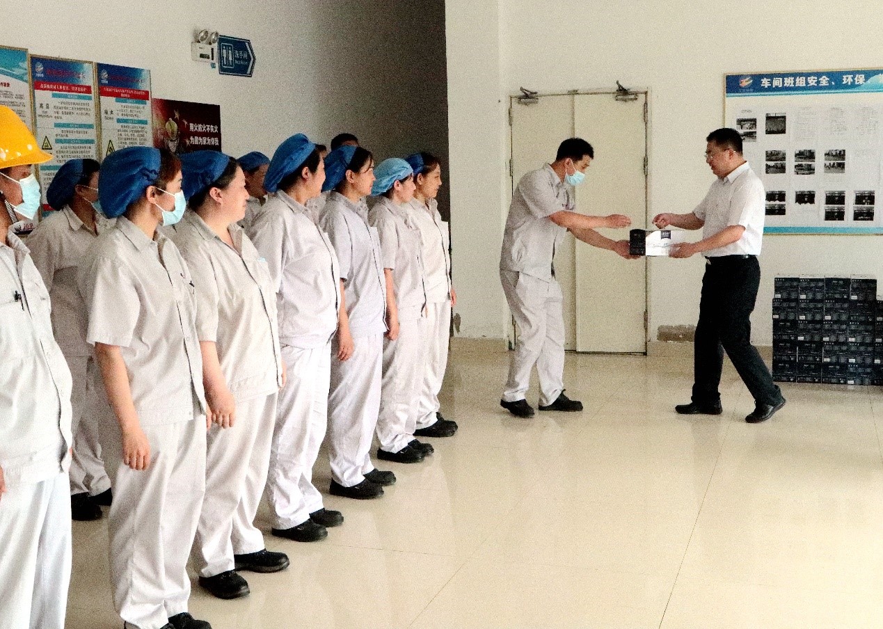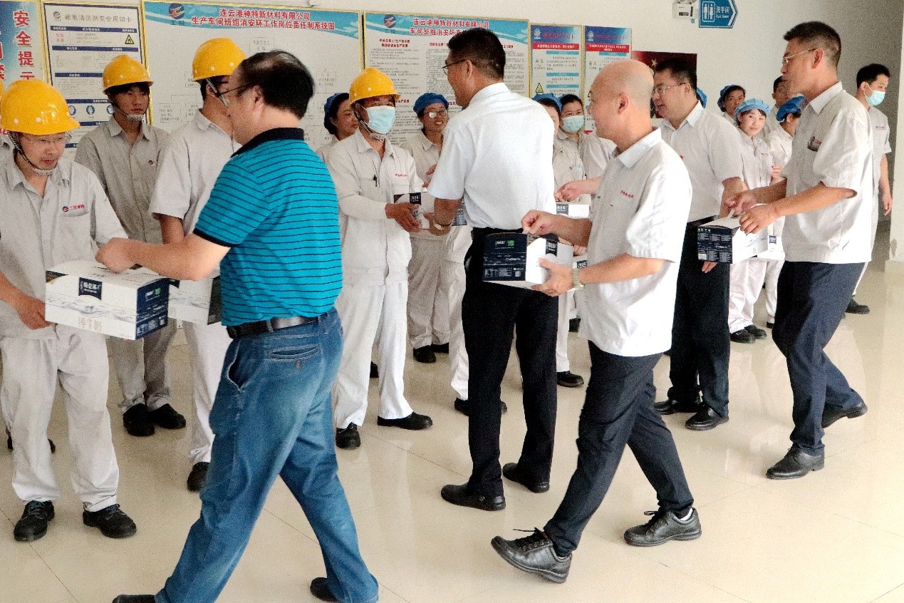 728日上午,集團(tuán)公司黨委副書記戴鴻鳴、工會(huì)主席劉承志一行到公司慰問生產(chǎn)一線員工,為生產(chǎn)一線員工送來牛奶、綠豆、白糖、大米等防暑降溫慰問品。公司董事長張斌、總經(jīng)理韓立新等領(lǐng)導(dǎo)陪同。