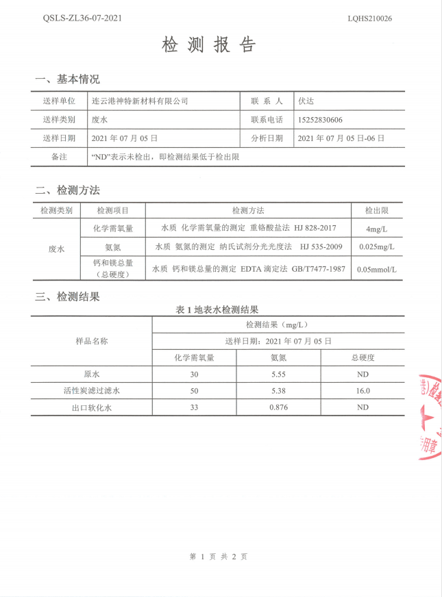 神特公司檢測報(bào)告公示