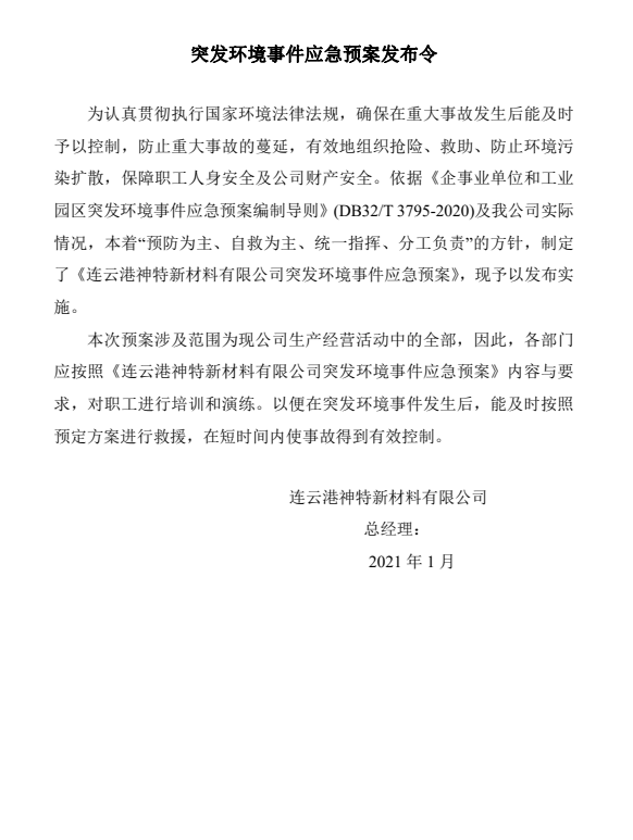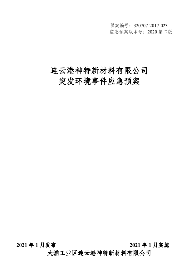 神特公司突發(fā)環(huán)境事件應急預案