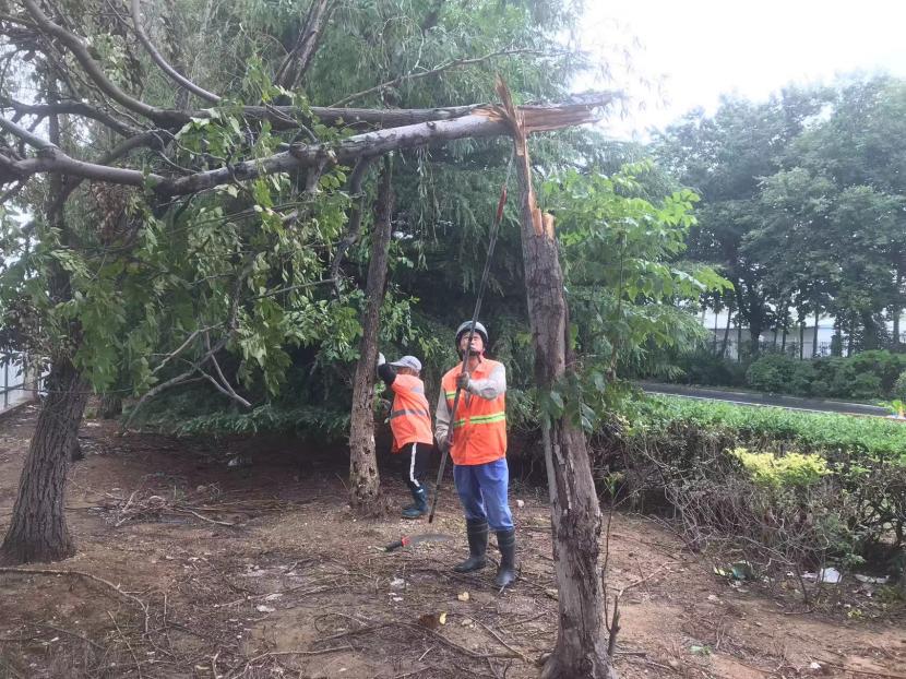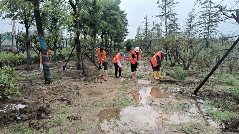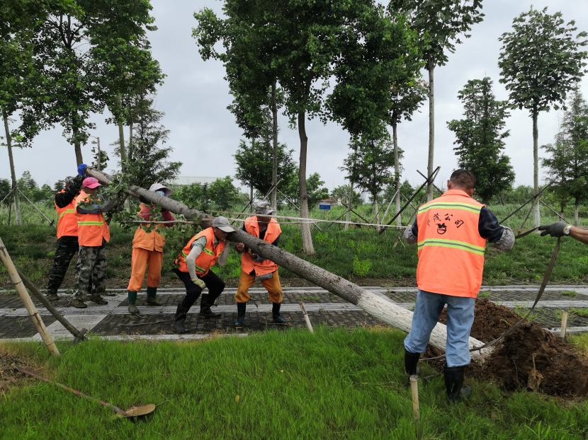 綠化分公司全力以赴筑牢汛期“安全網(wǎng)”,迅速開(kāi)展應(yīng)急處理,加大現(xiàn)場(chǎng)巡查力度,及時(shí)進(jìn)行排澇清淤、樹(shù)木扶正、強(qiáng)基加固,全力排除險(xiǎn)情,保障樹(shù)木、苗木安度汛期。截至20日17時(shí),出動(dòng)巡查人員 56人次,巡查車(chē)、高架車(chē)、貨車(chē)等車(chē)輛 24車(chē)次,扶正移栽倒伏樹(shù)木 70 株,修剪斷枝 12株,加固支撐168株。對(duì)云池路、玉竹路、匯晶路等22處路段排澇清淤,及時(shí)消除轄區(qū)內(nèi)安全隱患,保障了市民出行安全,鞏固了城市綠化成果。