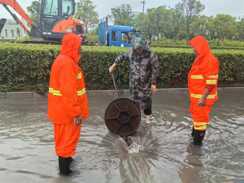 盛達(dá)市政分公司支委在“責(zé)任區(qū)”一線(xiàn)指揮,黨員沖鋒在前,24小時(shí)不間斷,在防汛一線(xiàn)筑牢“紅色城墻”,全力守護(hù)人民群眾生命財(cái)產(chǎn)安全。前后出動(dòng)車(chē)輛設(shè)備10余輛,處理道路積水20余處,應(yīng)急開(kāi)放閘9次,處理12345平臺(tái)案件100余件,應(yīng)急打開(kāi)圍堰4處,24小時(shí)監(jiān)護(hù)新光和花果山涵洞,緊急處理公交站臺(tái)、交通標(biāo)志牌等城市家具傾倒7處;翔立分公司多次緊急“處警”,快速修復(fù)開(kāi)太閘電路等多處電力故障,保障開(kāi)發(fā)區(qū)泄洪秩序。