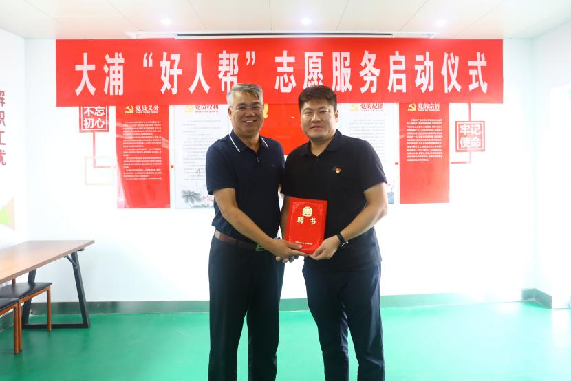 公司黨委書記、董事長王德志為“中國好人”常皓同志頒發(fā)了聘書,聘請常皓同志擔任“好人幫”志愿服務隊名譽輔導員。黨委副書記、工會主席、副總經理傅健向“好人幫”志愿服務隊進行了授旗,大浦分公司負責人代表“好人幫”志愿服務隊宣讀了《爭當好人倡議書》,三名“好人幫”志愿服務隊成員與幫扶對象結對并簽訂了幫扶協(xié)議書。