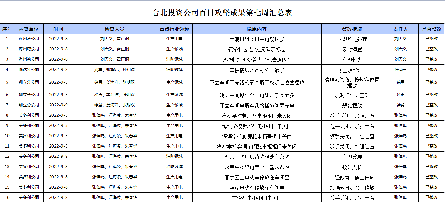 臺北投資公司百日攻堅成果第七周匯總表