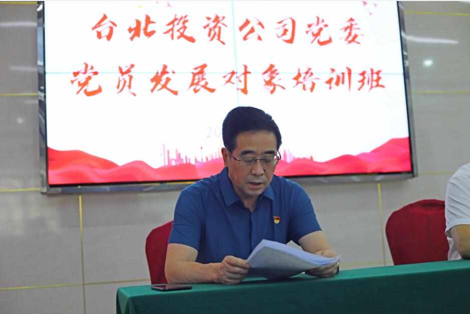 為強化黨員發(fā)展對象教育培養(yǎng),提升發(fā)展黨員質(zhì)量,近日,投資公司在廉政教育活動室開展黨員發(fā)展對象培訓班。按照要求,公司黨委安排了臺北形勢任務宣講、黨內(nèi)法律法規(guī)解讀、《中國共產(chǎn)黨章程》以及百年黨史等培訓內(nèi)容。黨委副書記楊善革作開班動員講話。