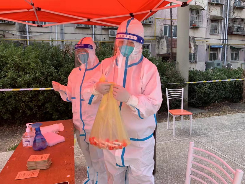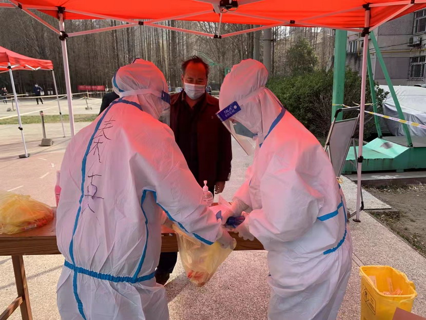 然而隨著疫情越發(fā)嚴(yán)重,小區(qū)核酸檢測(cè)員人手又緊張了起來(lái),“我可以,這幾天我都學(xué)會(huì)了,最基本的我都會(huì)”秦英又是第一個(gè)舉手到最前線。這下她更忙了,每天凌晨三點(diǎn)起床做飯,五點(diǎn)社區(qū)報(bào)到,一直堅(jiān)守到晚上八點(diǎn)。為了節(jié)省防護(hù)服,她一般都要等到中午2點(diǎn)多鐘才休息吃飯,這股毅力讓社區(qū)、街道領(lǐng)導(dǎo)看在眼里,服在心上,連一直牢騷怪話的幾個(gè)群眾也為她由衷地豎起大拇指。