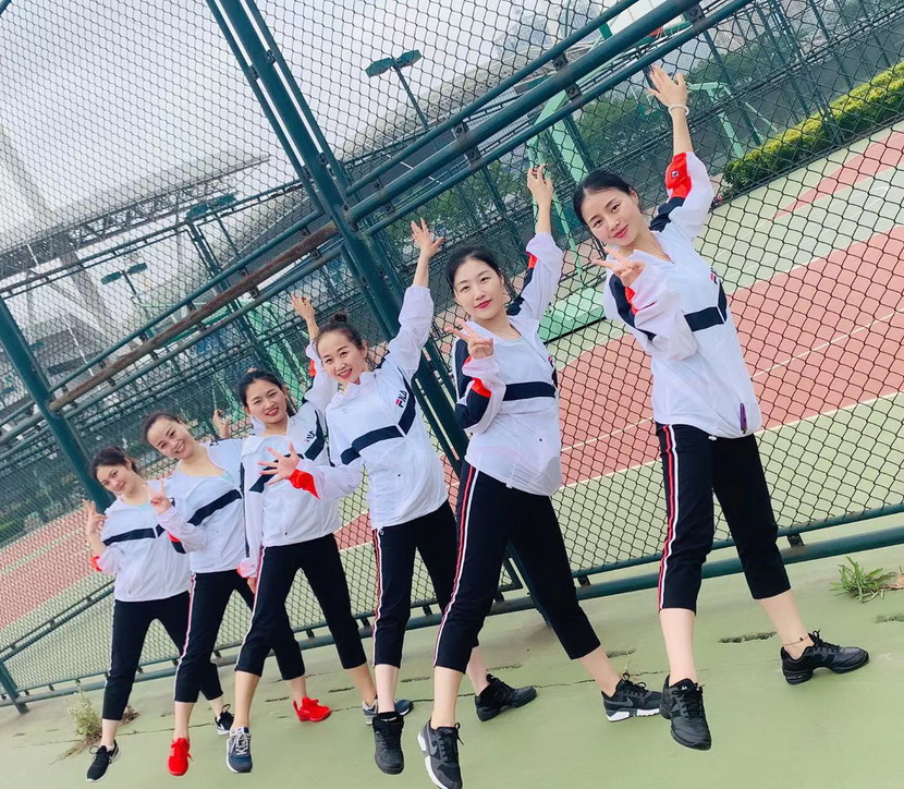 ▲ 平日里帶領(lǐng)“工投舞蹈隊(duì)”訓(xùn)練的秦英(右三)