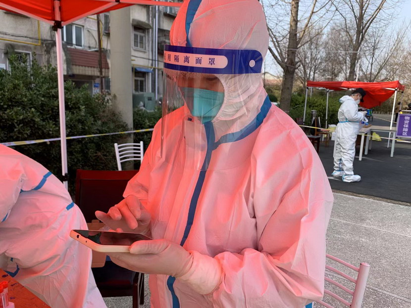▲ 海州區(qū)幸福路街道防疫主力隊(duì)員—秦英