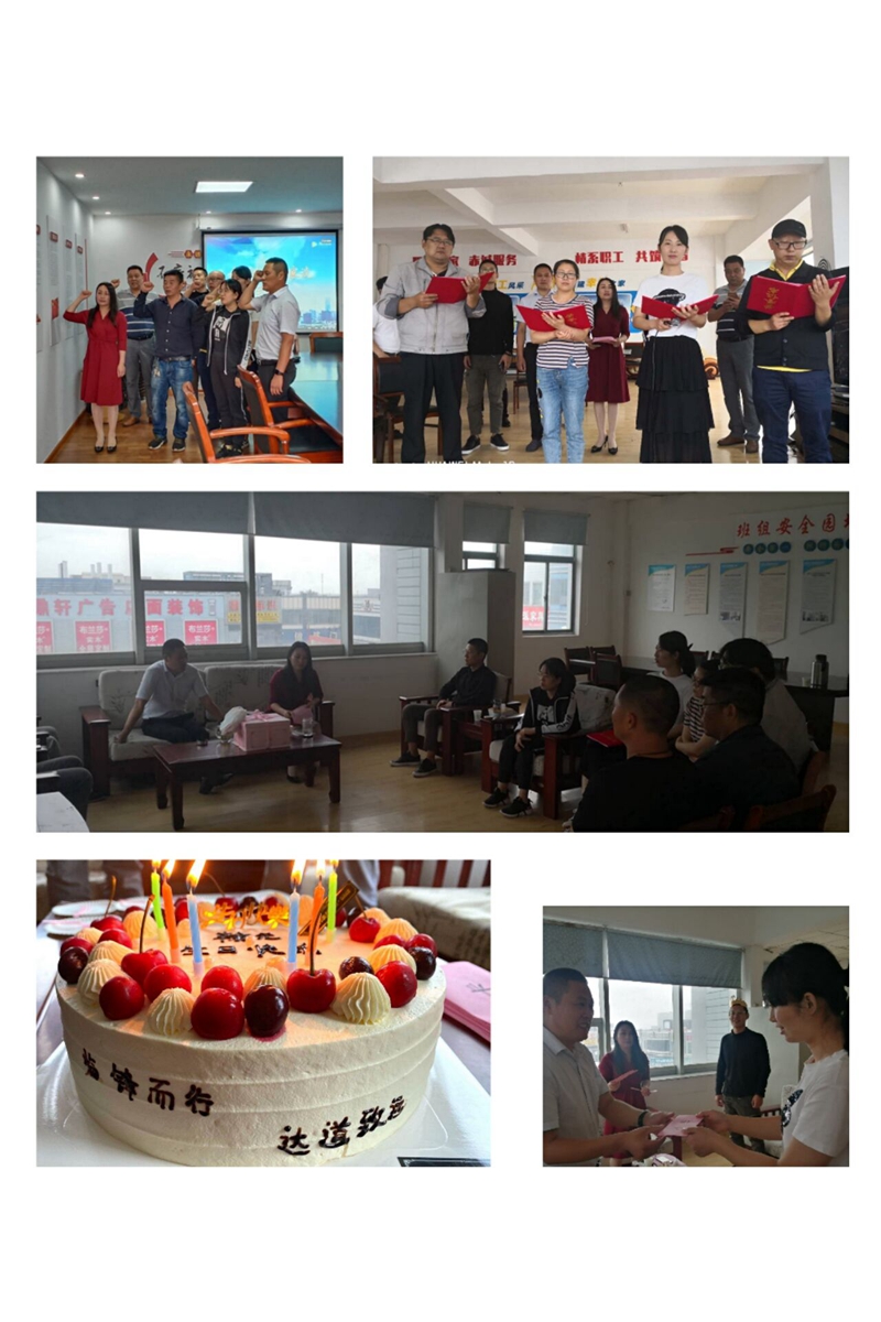 書記致辭。為黨員同志送上暖心祝福話語,向職工群眾提出爭先奮進(jìn)希冀,替臨達(dá)公司樹立更進(jìn)一步目標(biāo)。重溫誓詞。進(jìn)一步增強(qiáng)黨性,牢記黨的宗旨,恪守黨的紀(jì)律,堅(jiān)定理想信念,充分發(fā)揮先鋒模范作用。贈(zèng)送賀卡。書記親手為黨員同志們制作賀卡、寫下寄語,送到黨員同志們的手中。集體誦讀。全體職工高聲朗誦了詩詞《我的祖國》,激發(fā)愛國熱情,陶冶愛國情操。活動(dòng)最后,公司工會(huì)為職工精心準(zhǔn)備了豐盛的生日餐,讓職工深深體會(huì)到來自“娘家人”的溫暖。