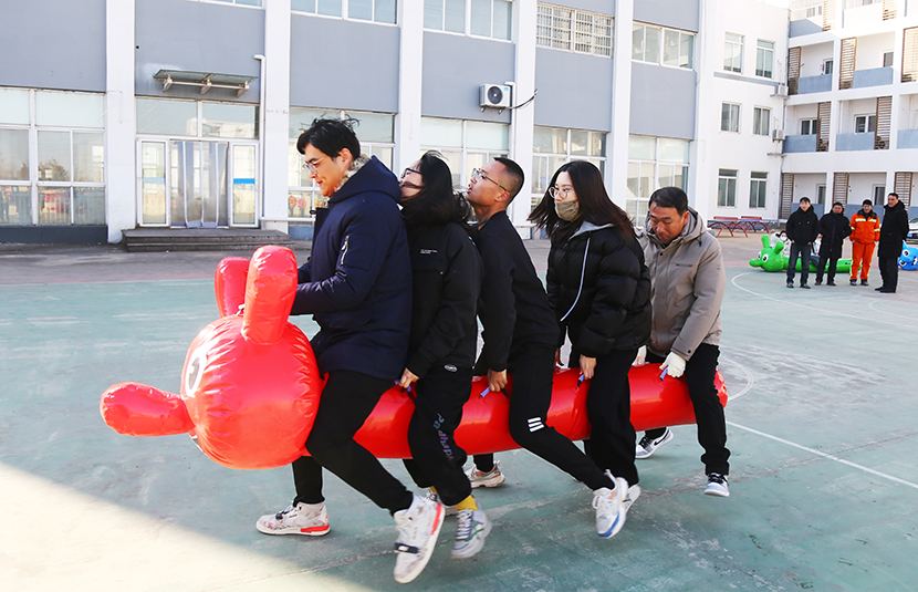 賽前,裁判員詳細(xì)介紹了該項(xiàng)目比賽方法及規(guī)則。隨著裁判哨聲的發(fā)令,參賽選手們齊心協(xié)力騎上“毛毛蟲”,一步一遙向前沖的氣勢(shì)迅速帶動(dòng)了現(xiàn)場(chǎng)的氣氛,助威聲也此起彼伏。有的隊(duì)伍喊著“一 、二 、一 、二”的口令來(lái)協(xié)調(diào)團(tuán)隊(duì)節(jié)奏,有的隊(duì)伍一齊唱著拉歌來(lái)增長(zhǎng)氣勢(shì),整個(gè)過(guò)程氣氛高漲,激起了各個(gè)隊(duì)伍的斗志心。