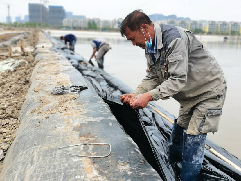 比賽共分為四組,每組6人。賽前,為公平起見,技能比武裁判組制定了詳細的評分規(guī)則,以小組為單位,裁判組依據(jù)各小組的塑布完整度、壓條銜接度、上墻布的牢固性等多個專業(yè)的技術環(huán)節(jié)進行現(xiàn)場打分,評選出在2個小時內,同規(guī)模、同長度、同條件格堰,塑布安裝質量最高的小組選手獲勝。