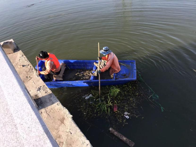 盛達市政分公司通過巡查發(fā)現(xiàn),佟圩河河道水草泛濫成災,導致河道堵塞, 水流不暢,給周邊環(huán)境和生態(tài)系統(tǒng)帶來了嚴重的影響。為確保轄區(qū)河道擁有一個“水清、岸綠、河暢、景美”的生態(tài)環(huán)境,該分公司立即調(diào)配5名水性較好的員工,于4月24日上午,對該水域的水草及雜物進行打撈清理。