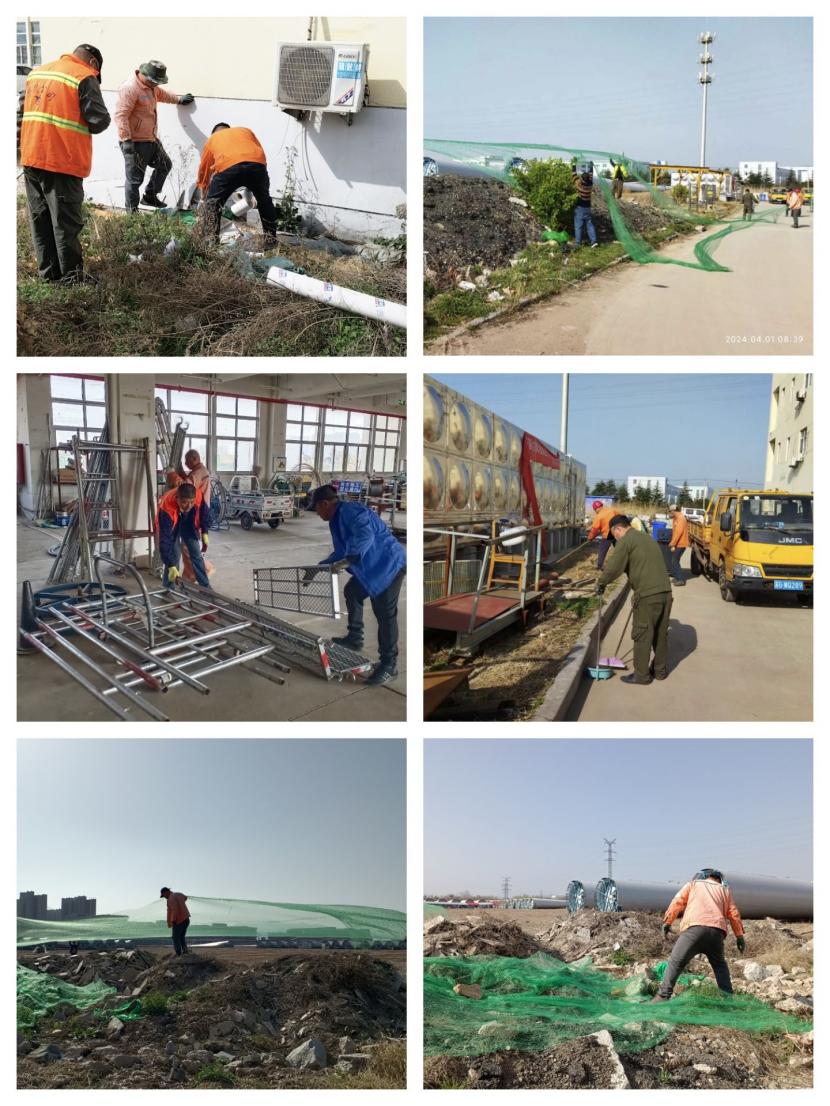 4月1日上午,該分公司各班組職工對(duì)室外露天的沙堆和石子用防塵網(wǎng)進(jìn)行認(rèn)真的覆蓋,有效的防止了揚(yáng)沙揚(yáng)塵對(duì)環(huán)境的污染影響。在車間里,職工們將散亂在各處的角手架等物品整齊的擺放在了指定區(qū)域,然后用水龍頭對(duì)地面進(jìn)行認(rèn)真的清洗,保證車間內(nèi)一塵不染的視覺效果,本次活動(dòng)的開展,明顯提升了車間和周邊環(huán)境的衛(wèi)生條件,增強(qiáng)了公司的環(huán)保形象,為大干二季度營(yíng)造了良好的工作環(huán)境。