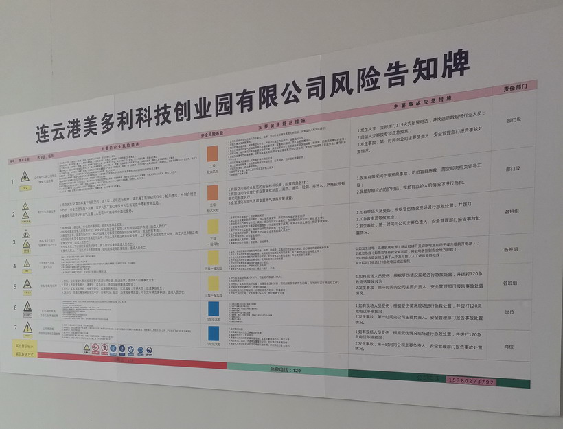為進(jìn)一步提升美多利公司安全管理水平,切實推行風(fēng)險分級管控與隱患排查治理雙重預(yù)防機制試點工作。近日來,美多利公司組織全體員工開展雙重預(yù)防機制教育培訓(xùn)。另外,對美多利公司消防泵房、特種設(shè)備等重點區(qū)域進(jìn)行風(fēng)險分級管控點檢,并對各個區(qū)域張貼崗位風(fēng)險分級管控告知卡。