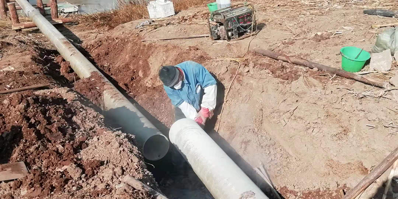 方案是拿出來了,但苛刻的現(xiàn)場環(huán)境、嚴峻的施工條件像冬季的陰霾再度籠罩在大家心頭!河對岸無交通橋梁人員無法直達對面,利用船只過河又面臨著河面結(jié)冰。以往這種距離的過河都是采用PE管(質(zhì)地柔軟彎曲性能優(yōu)越),但購買PE管道的成本太高。玻璃鋼管道本來就比較脆弱易碎,更何況是三節(jié)連接在一起長達36米的過河管道,這在鹽場管道施工史上還沒有先例。