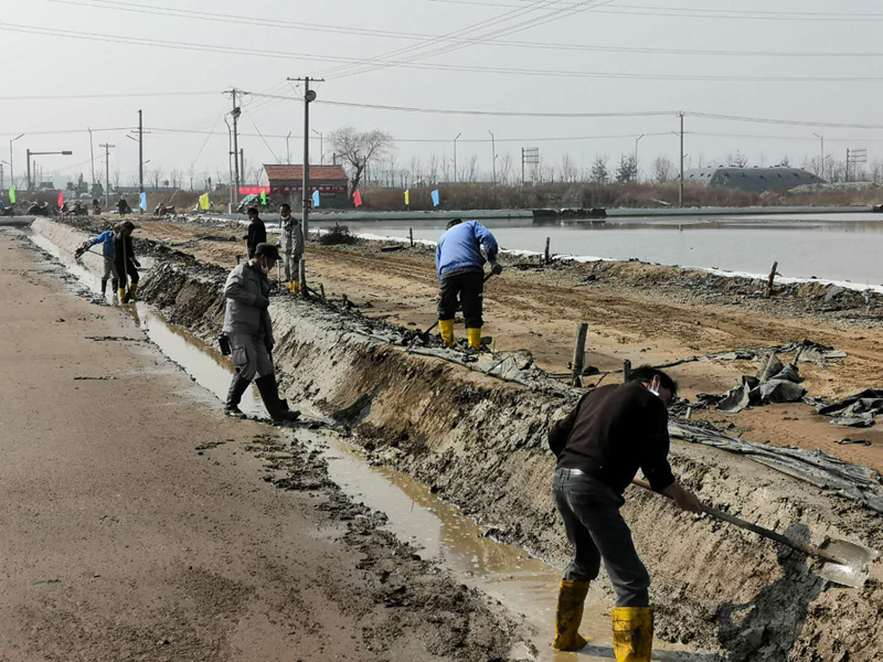 疫情攔不住奮進(jìn)者們,大浦全體員工投入了一場又一次的緊張繁忙的原鹽生產(chǎn)中。他們克服疫情影響充分利用初春的間隙時(shí)間,對塑布拉放、修補(bǔ)、灘地整修、鹵水收儲(chǔ)進(jìn)行及時(shí)有效的修復(fù)與儲(chǔ)存,為確保完成原鹽生產(chǎn)計(jì)劃奠定堅(jiān)實(shí)的基礎(chǔ)。