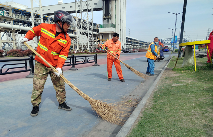 保潔保障“步調(diào)一致”。為完成徐新路、徐圩大道、海濱大道等石化園區(qū)多條道路保障任務(wù)。130余名“保潔先鋒”輪流轉(zhuǎn),每日清掃輔道路修剪石楠等樹葉雜草落葉路線1500米、清洗站臺座椅40余個、清掏果皮箱130余個、轉(zhuǎn)運(yùn)生活垃圾300袋、打包轉(zhuǎn)運(yùn)商鋪垃圾150余車,為保障節(jié)日期間道路保潔鍥而不舍。