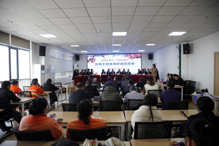 3月8日,投資公司工會(huì)在環(huán)衛(wèi)運(yùn)營管理中以“情系女職工 法在你身邊”為主題,舉辦 “女職工權(quán)益保護(hù)”知識競賽。投資公司黨委書記、董事長、總經(jīng)理莊清付,黨委副書記、工會(huì)主席劉剛,副總經(jīng)理?xiàng)钍孛?,各單位黨政工、工會(huì)女工委成員、悅升機(jī)關(guān)全體員工觀摩比賽。