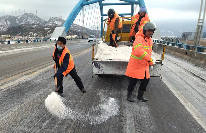 晚上7時,綠化,保潔班組聞雪而動,搶抓作業(yè)時間,連夜對管轄區(qū)內(nèi)燒香河大橋、云港路、瑞和路橋梁坡道、結(jié)冰路段進(jìn)行撒鹽融雪融冰作業(yè),他們頂著寒風(fēng)、冒著風(fēng)雪,不停揮動手中的鐵锨,任憑風(fēng)雪打在臉上,始終堅守在除雪第一線,他們是雪天最美的風(fēng)景線,更是這個城市最樸實最可愛的守護(hù)者。