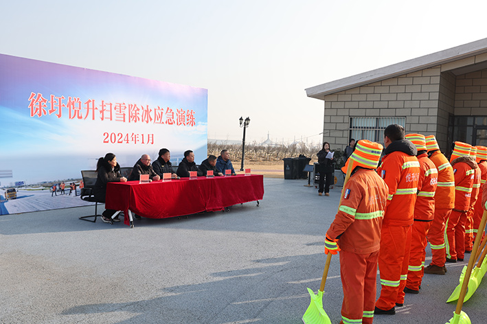 冬季是冰凍、降雪等自然災(zāi)害高發(fā)季節(jié),為切實(shí)做好冰雪災(zāi)害性天氣的應(yīng)對(duì)及突擊保障工作,搶險(xiǎn)救災(zāi)減少損失,1月4日下午,悅升公司聯(lián)合徐圩城建公司及社事局、徐圩環(huán)衛(wèi)所在上海路進(jìn)行掃雪除冰應(yīng)急演練。徐圩城建公司副總經(jīng)理肖堅(jiān),徐圩環(huán)衛(wèi)所所長(zhǎng)郁紅衛(wèi),徐圩新區(qū)社會(huì)事業(yè)局環(huán)衛(wèi)科科長(zhǎng)趙國(guó)慧、悅升公司董事長(zhǎng)馮如師、總經(jīng)理徐習(xí)華及各公司相關(guān)負(fù)責(zé)人參與本次演練。