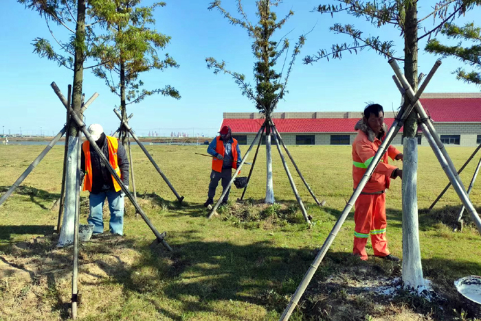 連日來(lái),綠化分公司為為扎實(shí)做好冬季樹(shù)木養(yǎng)護(hù)工作,提高樹(shù)木的過(guò)冬、抗病和抗蟲(chóng)能力,開(kāi)展樹(shù)木涂白行動(dòng),為樹(shù)木披上“防寒衣”。
