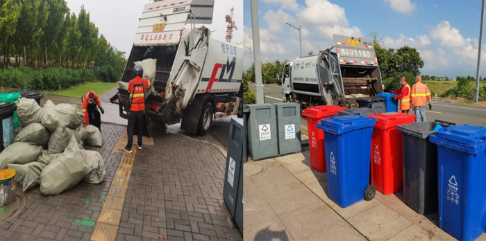 節(jié)日期間,環(huán)衛(wèi)分公司每天出2輛清運(yùn)車輛,隨車4名環(huán)衛(wèi)推桶工人、2名駕駛員,對徐圩新區(qū)住宅小區(qū)、企業(yè)(單位)及公共地段60個(gè)垃圾收集點(diǎn)的440個(gè)垃圾分類桶、200個(gè)果皮箱及400個(gè)垃圾包進(jìn)行清收。每日清收垃圾約20余噸,并及時(shí)將垃圾轉(zhuǎn)運(yùn)到垃圾中轉(zhuǎn)站。