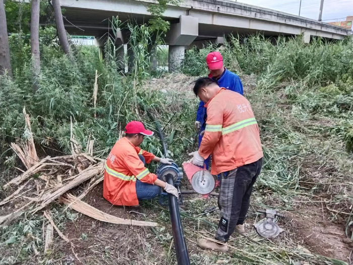 ? ? ? ?供水組接到任務(wù)后,積極采取措施,切實(shí)解決用水問(wèn)題??紤]到原管網(wǎng)承壓脆弱,為避免造成水資源的浪費(fèi),針對(duì)性對(duì)加水點(diǎn)上游老化管道進(jìn)行更換改造。在施工過(guò)程中,由于安裝管道在野外作業(yè),施工環(huán)境較差,隊(duì)員要在一人高蘆柴地里來(lái)回穿梭,進(jìn)行管道布設(shè)、管道熔接,加上室外溫度達(dá)到35度以上,灼熱感、蚊蟲叮咬讓隊(duì)員們相當(dāng)難受,隊(duì)員季小東、劉佃寶脖子已經(jīng)出現(xiàn)紅腫,率先領(lǐng)到“紅包”。供水班組全體人員埋頭苦干,毫無(wú)怨言,克服天氣及環(huán)境不利因素影響,搶時(shí)間、抓進(jìn)度,經(jīng)過(guò)3日全力奮戰(zhàn),順利完成此次管道更新改造任務(wù)。此次安裝作業(yè),已對(duì)326米老舊管道進(jìn)行了更換,加裝直徑100閘閥2個(gè)、直徑100水表1只、100*65型地上式消火栓1個(gè)。(楊維軍)