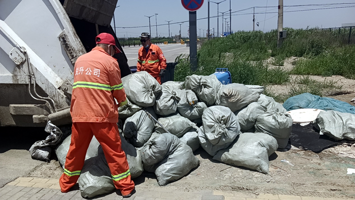 夏日,人們夜生活比較豐富,街道飯店、路邊燒烤等餐飲垃圾原因。在這樣的日子里,人們多了聚會吃喝玩樂的時間,導(dǎo)致各類生活的垃圾異常暴增。環(huán)衛(wèi)“戰(zhàn)士”們要面對著烈日炎炎高溫下收運垃圾的巨大困難,(原有兩臺垃圾清運車)。由于一臺清運車在大修,現(xiàn)在只有一輛車在作業(yè),收運垃圾根本忙不過來,根據(jù)這種工作現(xiàn)狀,垃圾清運班采取全員加班、集中清理、延長時間等形式開展工作。與此同時,環(huán)衛(wèi)“戰(zhàn)士”們還需要考慮在進(jìn)行垃圾收運之時、合理做好自身防護(hù)、科學(xué)安排垃圾收運路線,并根據(jù)調(diào)研下安排的收運頻次,進(jìn)行現(xiàn)場調(diào)整,從而有條不紊地以 “規(guī)范、安全、密閉 ”為原則開展垃圾清運。